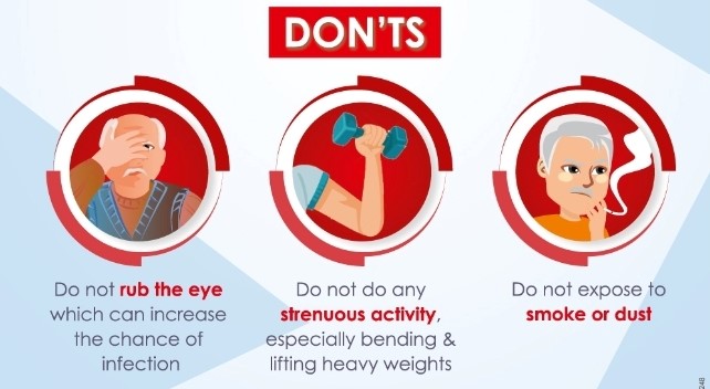 2) Wear your eye shield at nights during the recovery time. It is to ensure that you do not touch or rub your eyes in sleep.