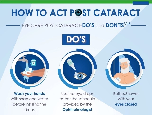After your surgery, the hospital will give you an eye pad or shield to cover your eyes. Also, you will have to wear sunglasses to protect your eyes from bright light and glare.